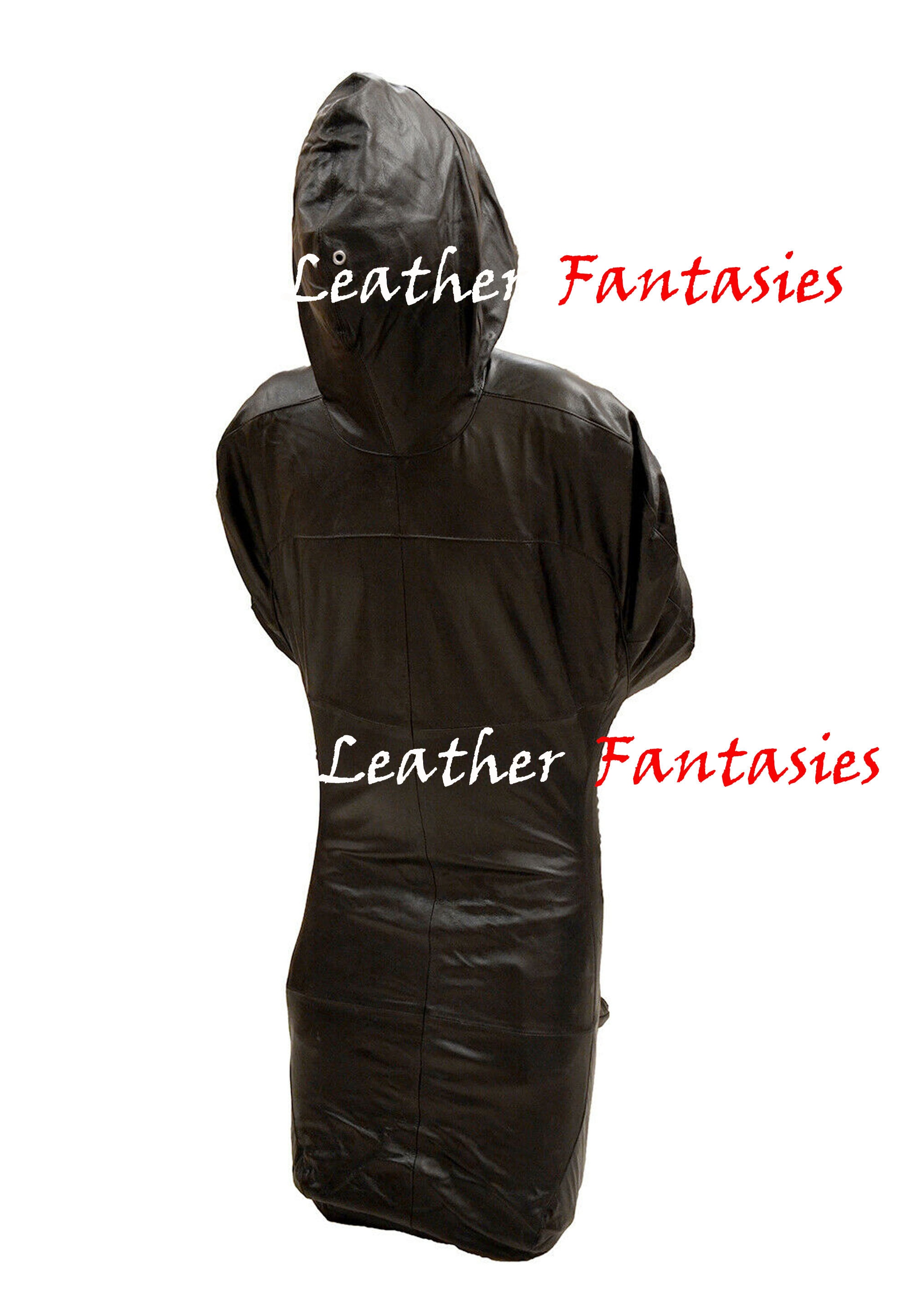 Genuine Black Leather Body Suit Bdsm Gimp Suit Blindfold Hood Etsy